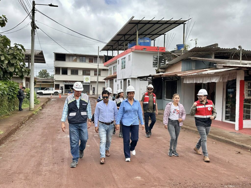 La alcaldesa Fanny Uribe, junto a los concejales Patricio Moreta Altamirano y Elizabeth Cadena, y el equipo técnico de la Empresa Pública de la Universidad Técnica de Ambato (UTA EP), mantuvieron un diálogo con la comunidad de Bellavista para socializar la intervención de la calle 18 de Febrero.