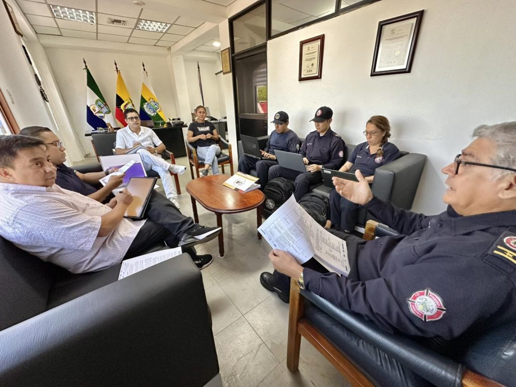 El alcalde (s) Patricio Moreta mantuvo una reunión con el Crnl. Freddy López Valarezo, jefe del Cuerpo de Bomberos de Santa Cruz, y su equipo técnico, con el fin de trazar una hoja de ruta y avanzar en el proyecto de ordenanza de tasas, que permitirá establecer un cobro justo y técnico, enfocado en el funcionamiento eficiente de esta institución clave para la seguridad ciudadana .
