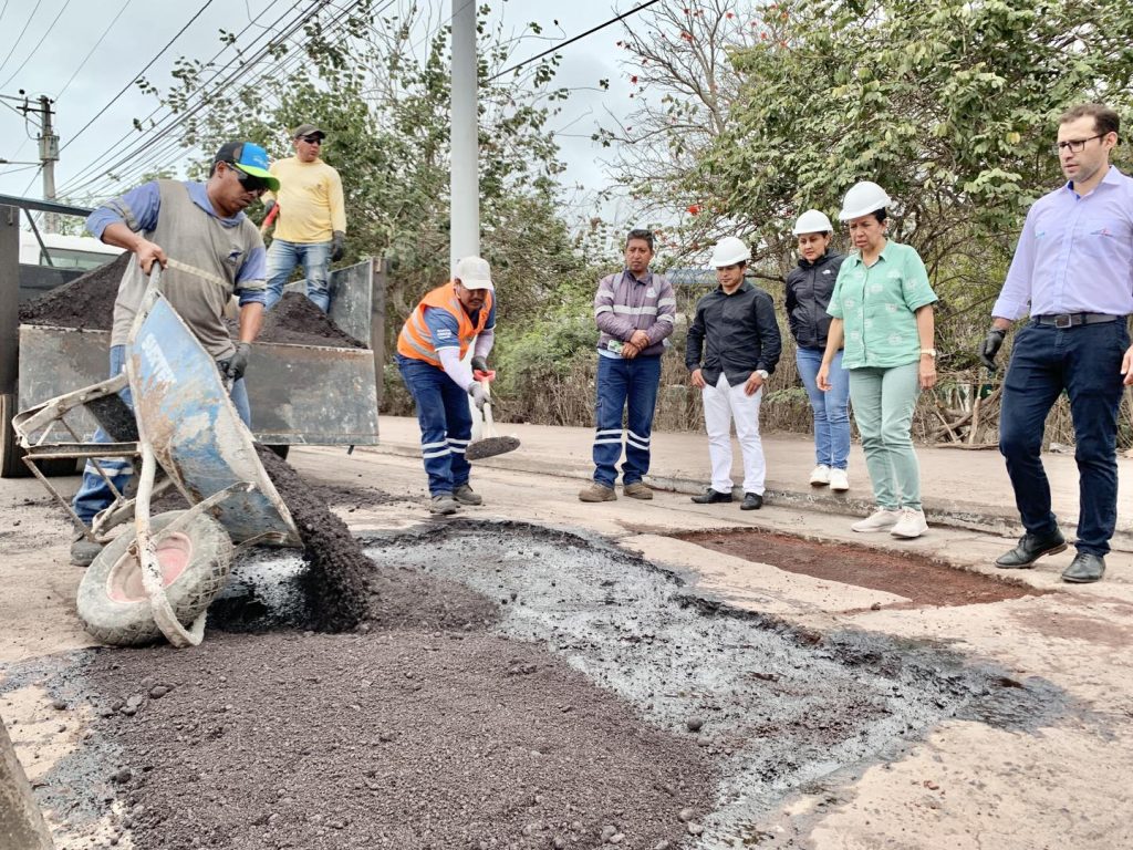 La capacitación incluyó teoría y práctica, culminando en una prueba de bacheo en la calle Isla Duncan. La alcaldesa Fanny Uribe estuvo presente y destacó: “Hemos sido testigos del deterioro de las calles de nuestra turística isla Santa Cruz. En esta administración, el mejoramiento de vías es una prioridad y una realidad.”