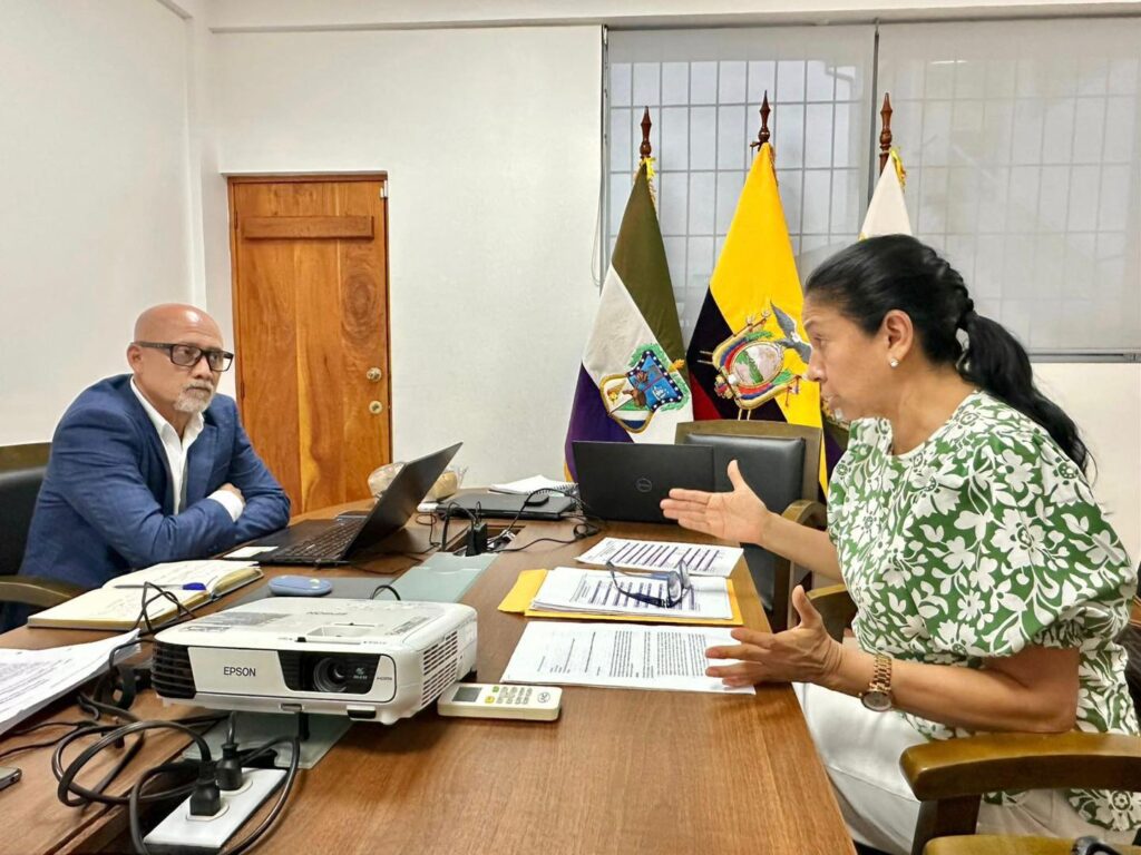 La alcaldesa de Santa Cruz, Lcda. Fanny Uribe, mantuvo hoy una reunión con el Presidente del Consejo de Gobierno de Galápagos, Mgs. Tito Gavilanes, para exponer la grave situación generada por la paralización del uso de material pétreo para la construcción en Santa Cruz.